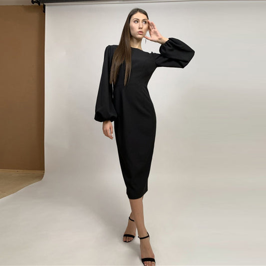 Alana Solid Turtleneck Lantern Sleeve Maxi Dress