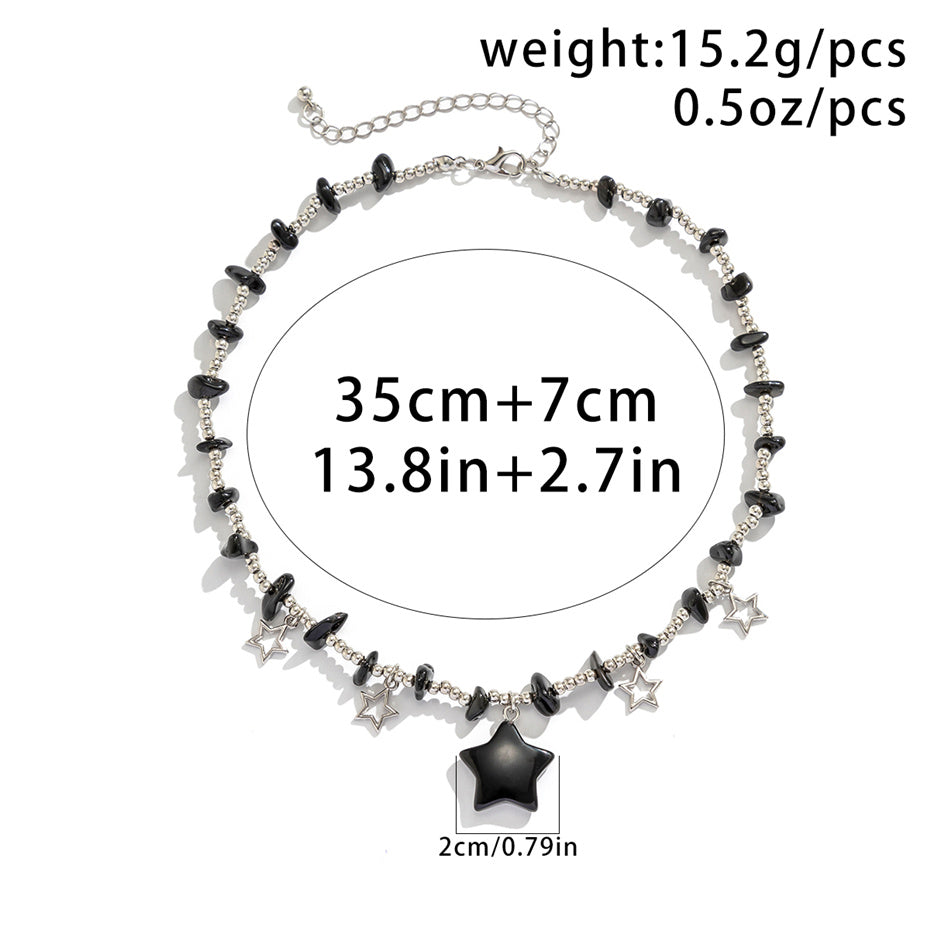 Introducing the Boho Colorful Irregular Stone Choker Necklace. Made with eye-catching beads and featuring a unique hollow star pendant, this necklace is the perfect addition to any summer outfit. Elevate your style and embrace the Y2K trend with this statement jewelry piece.