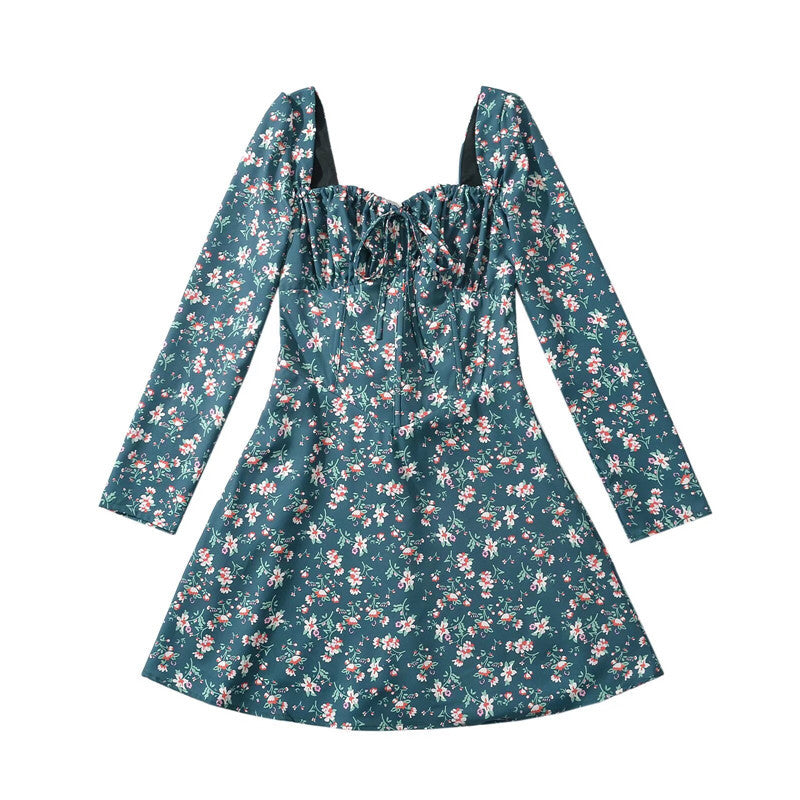 Betty Backless Square Collar Long Sleeve Lace-up Mini Dress