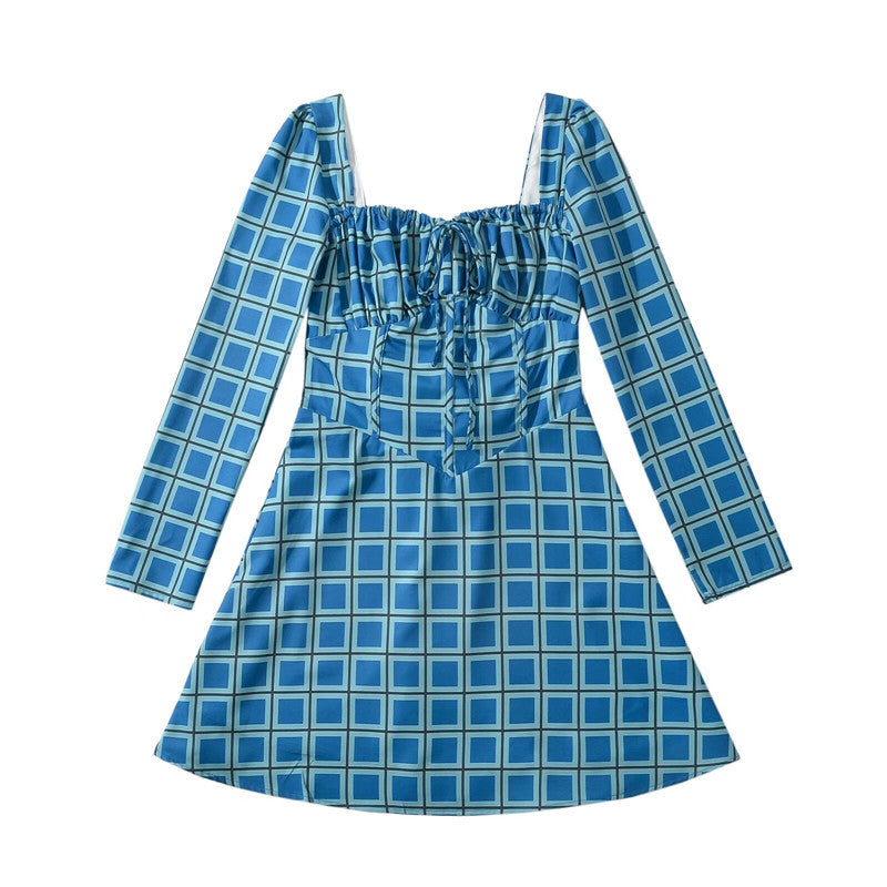The Tartan Backless Mini Dress is a must-have for every fashion-forward woman. With a Square Collar and Long Sleeves, this A-line dress exudes elegance and trendiness. The lace-up design adds a touch of femininity to the overall look. Perfect for the upcoming Spring season, this dress is a must-have addition to your wardrobe.