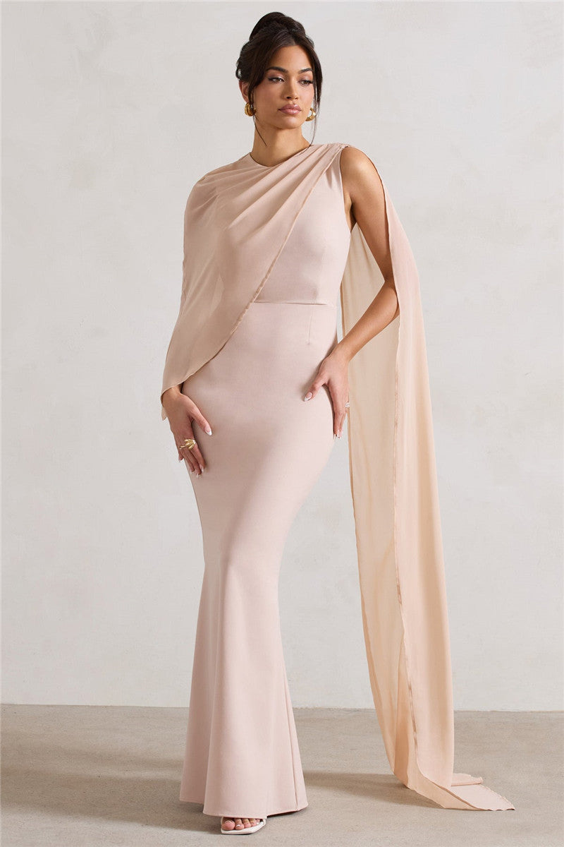 Introducing the latest in elegant fashion for women, our Cloak Sleeves Maxi Dress. This O Neck Bodycon Long Dress boasts a sleek and sophisticated design, perfect for any evening party or event. The stretchy material and bodycon fit flatter your figure, making you stand out in the crowd. Elevate your wardrobe with this stunning dress today.