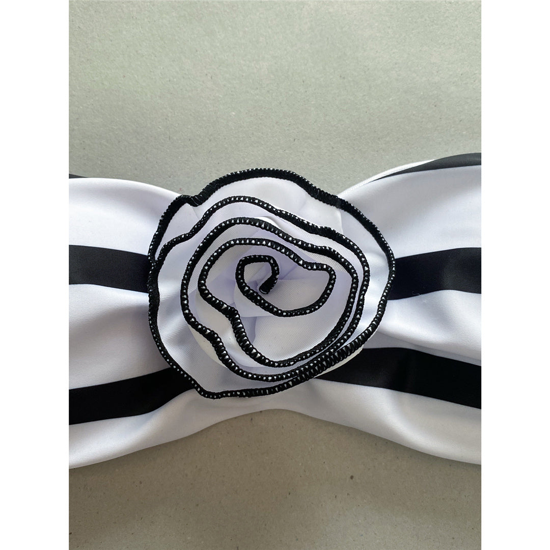 Connie 3D Flower Striped Bandeau Strapless Bikini