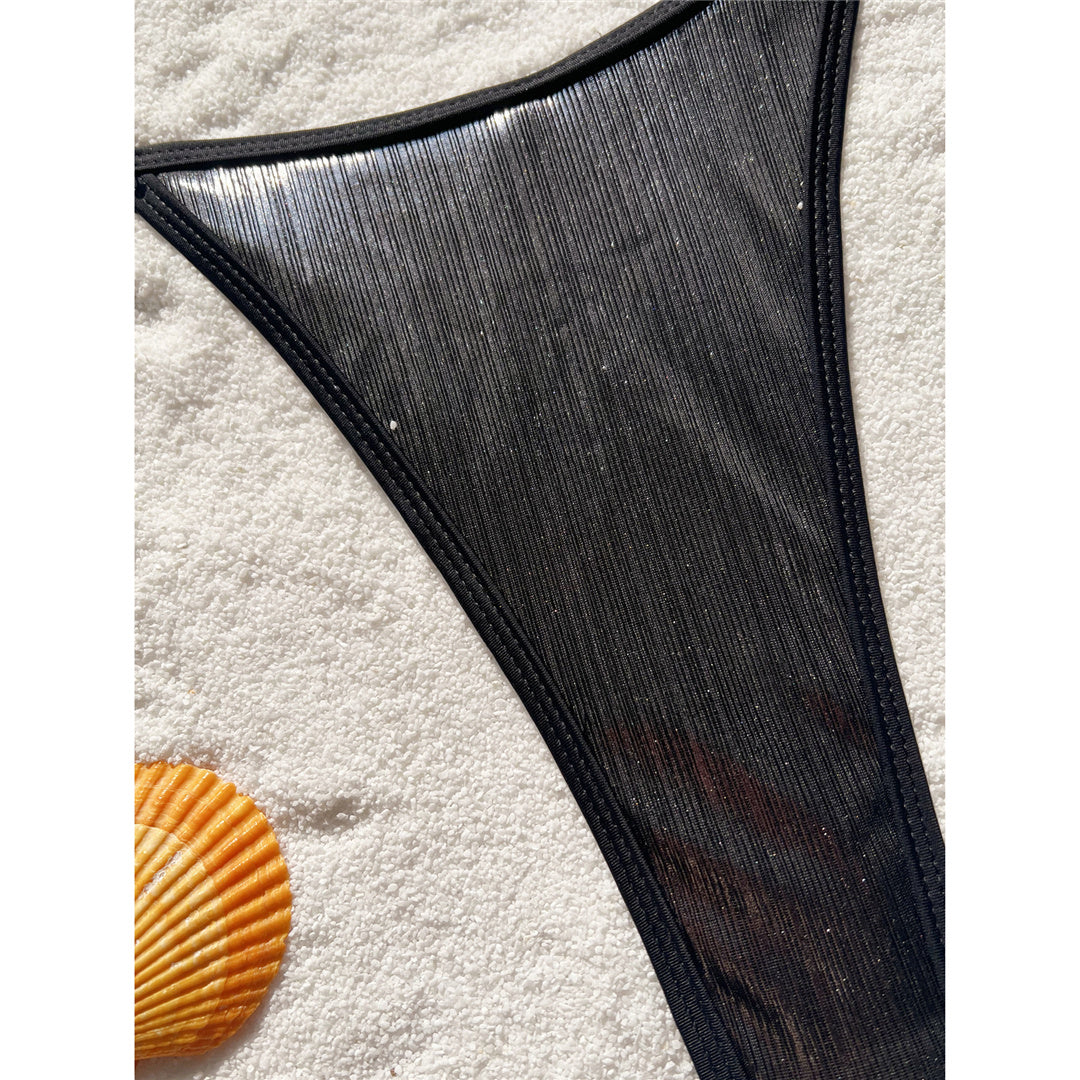 This strappy two-piece bikini is designed with a halter neck and high cut bottoms, featuring a pearl embellishment for a touch of sophistication. Made for comfort and style, it's the perfect swimsuit for any female looking for a flattering fit.
