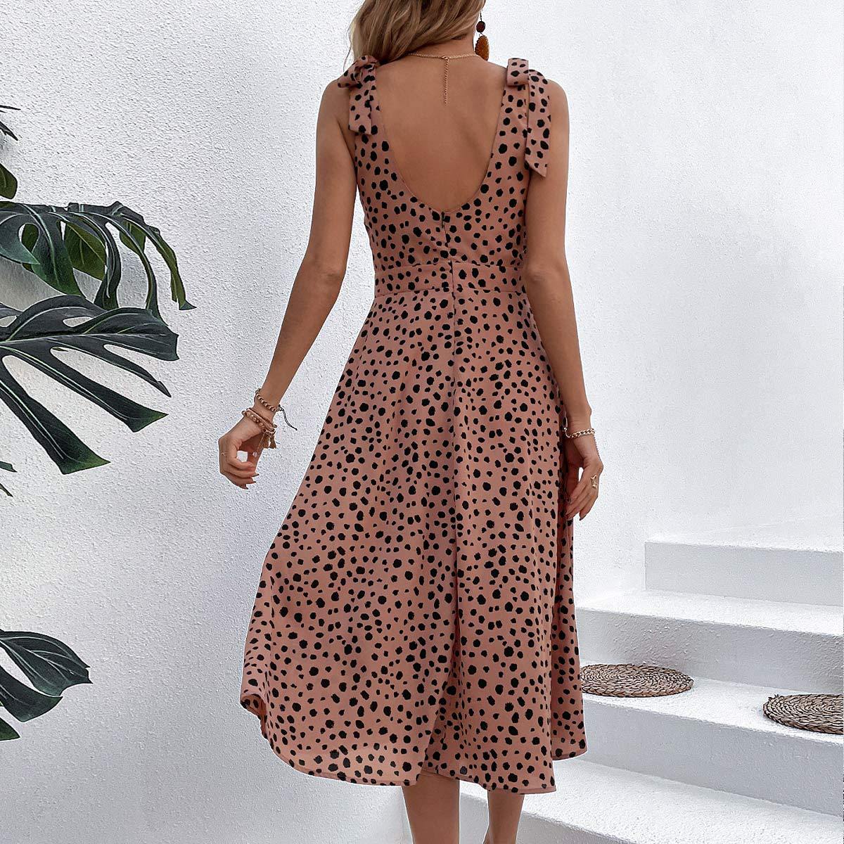 This summer, stay effortlessly stylish in the Esther Dot Print Midi Dress. Crafted from lightweight polyester fabric, this casual midi dress features an elegant dot print, backless design, and adjustable lace-up front. The flattering A-line silhouette and pink hue make it perfect for warmer days. Look and feel your best at the beach or summer gatherings.