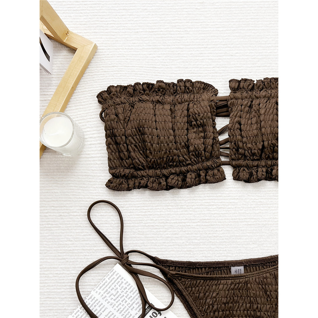 Elevate your beach style with our Bandeau Pleated Ruched High Leg Cut Bikini. Designed for the modern woman, this two-piece set offers a flattering fit and comfortable wear. The pleated and ruched detailing adds a touch of sophistication, while the high leg cut accentuates your curves. Perfect for any beach or pool day, our bikini will have you looking and feeling confident.