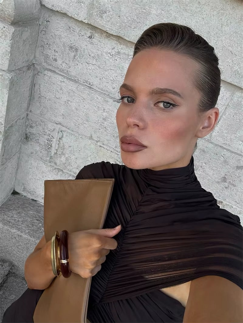 This hollow-out short sleeve maxi dress combines bold design with elegant silhouettes. Featuring an O-neck and ruched high waist, it accentuates the body’s natural curves for a flattering fit. Crafted to be both sexy and sophisticated, this bodycon dress is ideal for clubbing or party evenings, offering a striking look that blends comfort with modern fashion.