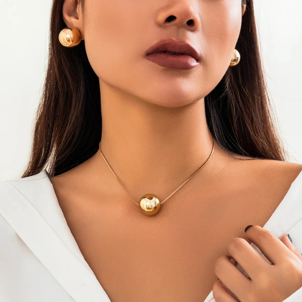 Expertly crafted with a high quality punk design, this necklace and earring set is the perfect statement piece for any woman. The big ball pendant and snake bone chain exude a vintage choker style, making it a unique and stylish addition to any jewelry collection. Perfect as a gift for that special someone.