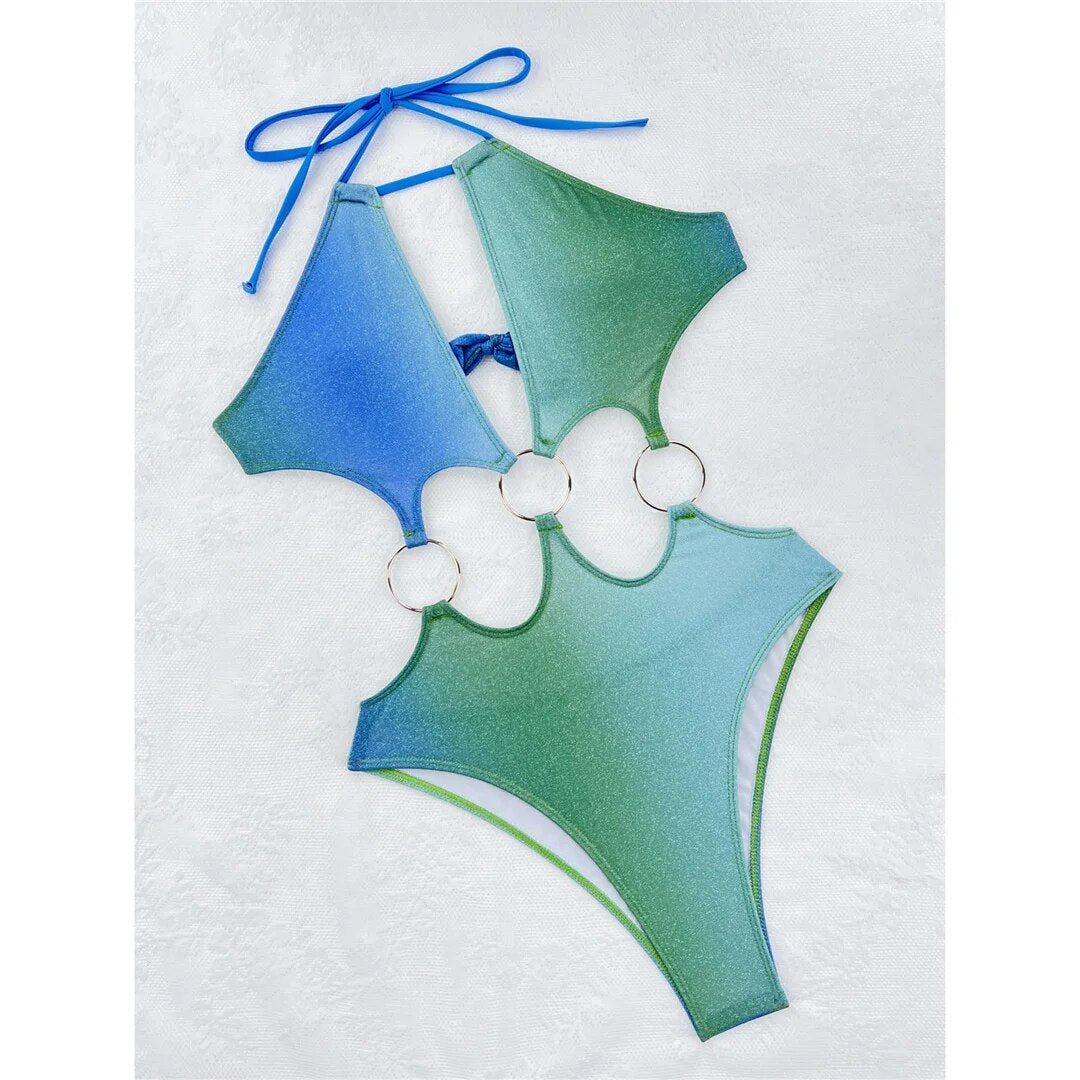 Julie Glitter Sparkling Halter Cut Out One Piece Swimsuit
