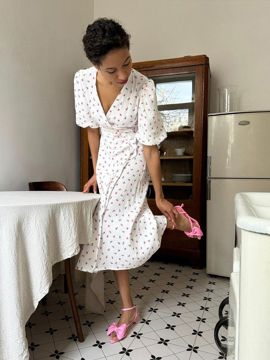 Introducing our V-Neck Printed Lace-Up Maxi Dress, the perfect addition to your summer wardrobe. With its high waist and bandage detailing, this dress offers both fashion and comfort for any occasion. Don't miss out on our newest design for 2024.