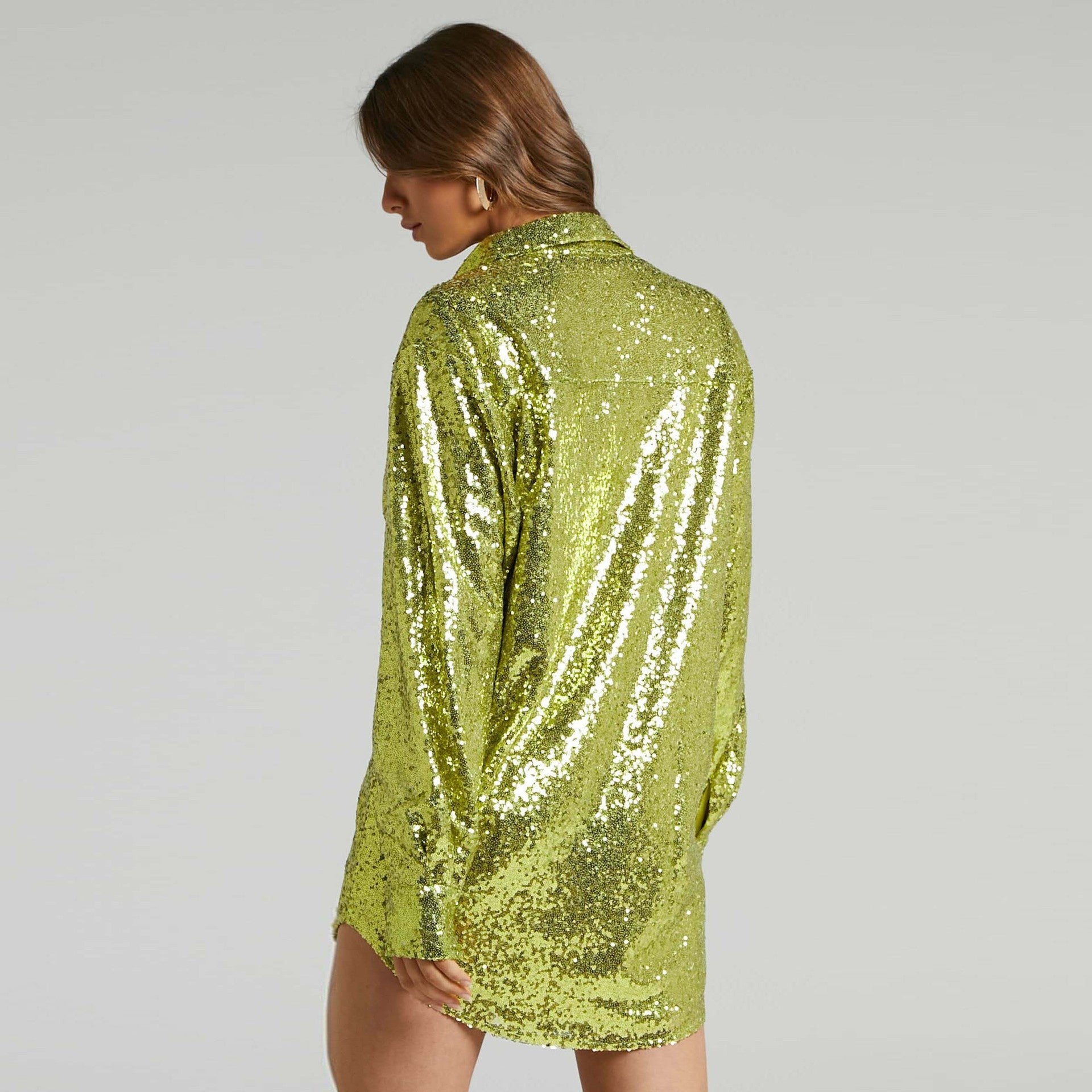 Stay on trend with this Margie Turn-down Collar Bright Silk Shirt Dress, crafted with a turn-down collar and bright silk for an elegant and chic look. Finished with long sleeves and a loose fit, this dress provides the perfect balance of fashion and casual style. Add it to your wardrobe for an effortlessly stylish look.