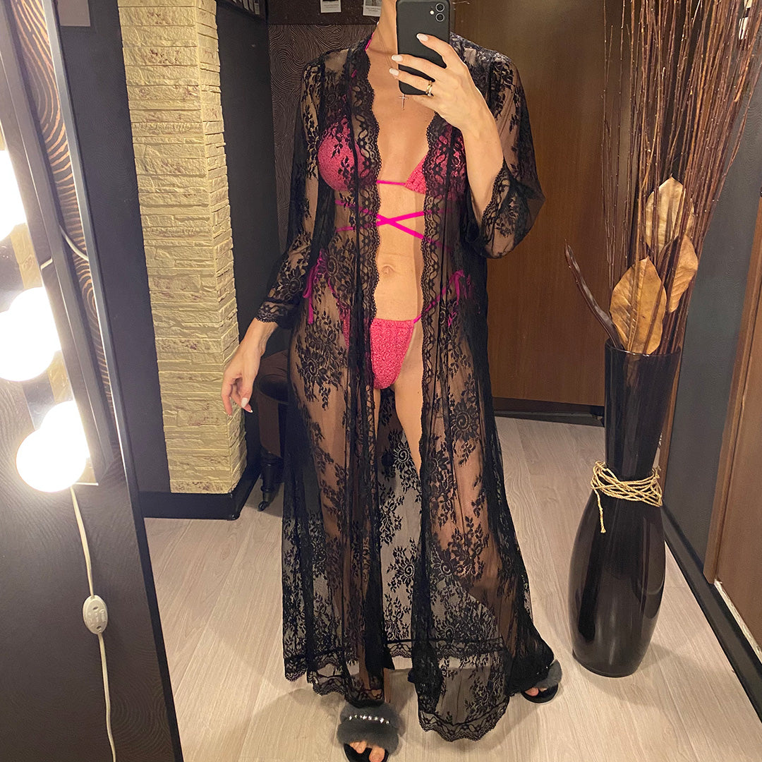 Elevate your beach attire with our Sexy Lace Embroidery Long Dress. Made with lightweight mesh fabric, this stunning maxi dress features delicate lace embroidery and a sheer see-through design for a touch of sexiness. Perfect for summer days, it also doubles as a stylish beach cover up. Stay cool and stylish with this must-have dress.