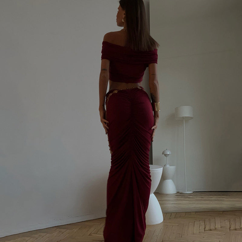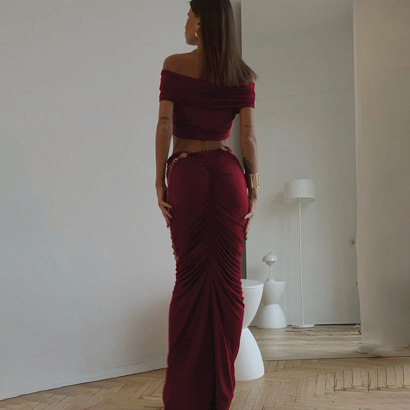 Upgrade your wardrobe with our Sexy Skirt Two Pieces Sets. This elegant off-shoulder crop top and bodycon skirt set is tailor-made to flatter all shapes and sizes. Perfect for a night out or formal event, this set will have you feeling confident and stylish. Embrace the latest trend and enhance your look with our Ladies Outfits.