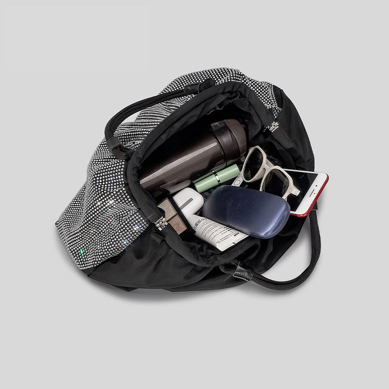 This Polly Diamonds large capacity women bag is the perfect accessory for any occasion. Combining fashion and function, it features a diamond design with a large capacity interior and plenty of space for everyday essentials. The rhinestone shell, shoulder strap and crossbody design complete the look while ensuring comfortable use. Perfect for parties, travel, and everyday wear.