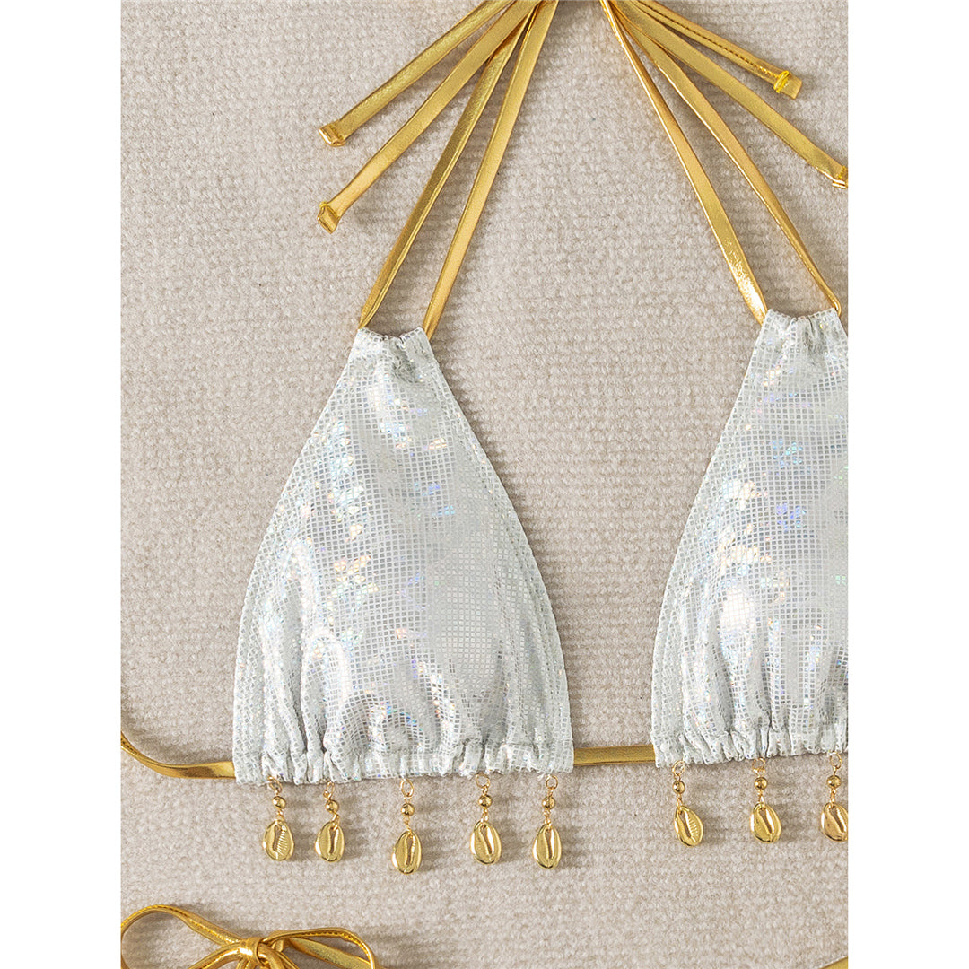 Regina Shiny Sequins Halter High Leg Cut Bikini