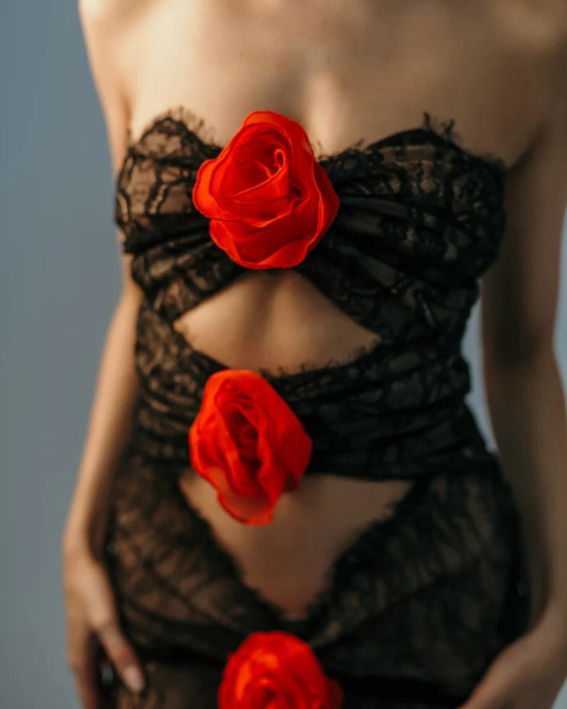 Shannon Hollow Out 3D Flower Maxi Dress
