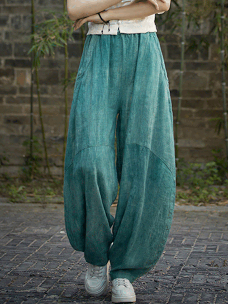 These women's cotton linen cargo pants are a versatile addition to any wardrobe. With an elegant, vintage design and comfortable elastic waist, these trousers offer a loose, wide leg fit for a relaxed and stylish look. Perfect for yoga, casual wear, or dressing up, these oversized pants are a must-have for any fashion-forward woman.
