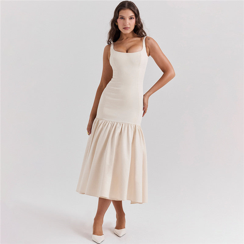 Expertly designed for elegance, this backless maxi fishtail dress will make a statement at any event. Its square collar and sleeveless design add a touch of sophistication, while the pleated details and loose fit provide both comfort and style. Perfect for the fashion-forward woman seeking a chic look.