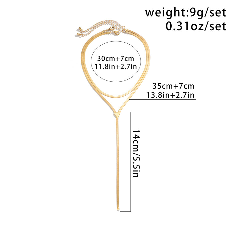 Add a touch of vintage charm to your outfit with the Tina Women Steampunk Metal Choker Necklace. Made with a multilayer design, this necklace features a stylish triangle pendant and a long snake chain, perfect for adding a unique look to your chest and clavicle. The perfect gift for anyone with a love for gothic fashion.
